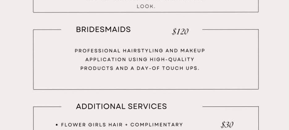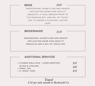 Bridal Pricelist